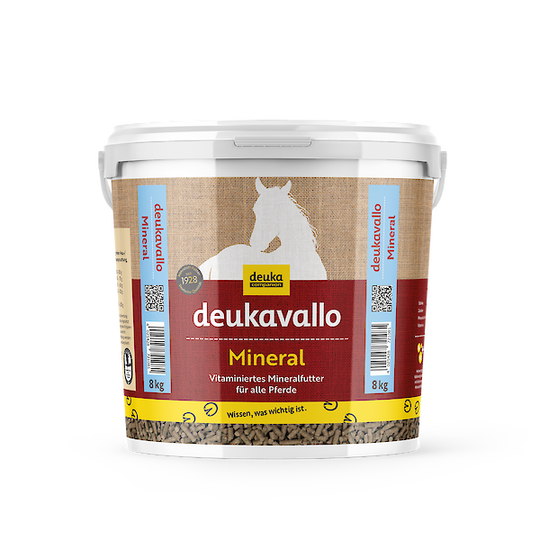 Deukavallo Mineral ist ein hochwertiges Mineralfutter zur Basisversorgung aller Pferde – Freizeit-, Zucht- und Sportpferde. Es gleicht zuverlässig Vitamin- und Mineralstoffdefizite aus, enthält eine angenehme Kräuterformel mit Bierhefe für gute Akzeptanz und unterstützt Haut, Fell, Hufe sowie Verdauung.