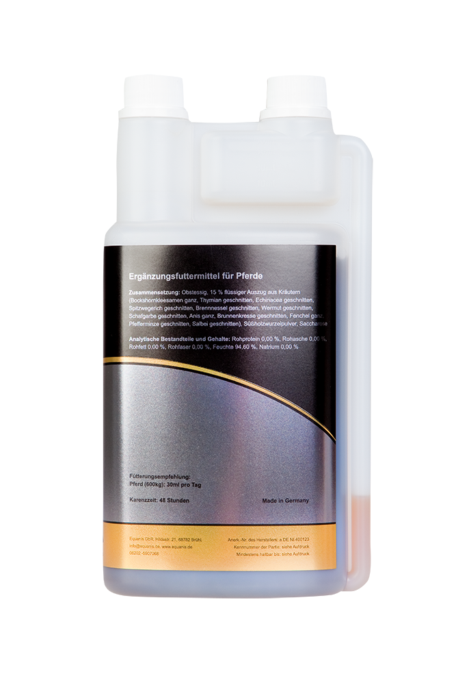 BronchoActive ist ein flüssiges Kräuterergänzungsfuttermittel für Pferde, das mit einer sorgfältig abgestimmten Mischung aus 13 Heilkräutern die natürliche Funktion der Atemwege unterstützt. Die pflanzlichen Inhaltsstoffe helfen, die Bronchien zu reinigen, den Hustenreiz zu lindern und das Abhusten zu erleichtern. Zugleich stärkt BronchoActive das Immunsystem und trägt zur allgemeinen Vitalität deines Pferdes bei – ideal in der kalten Jahreszeit oder bei Atemwegsbelastung.