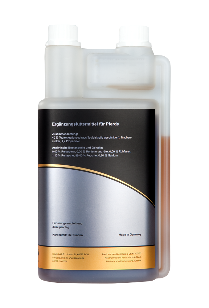 Equanis Devil’s Claw ist ein hochwertiges, flüssiges Ergänzungsfuttermittel, das gezielt zur Unterstützung des Bewegungsapparates von Pferden eingesetzt wird. Durch die Kombination von Teufelskrallen-Wurzel mit magenfreundlichen Kräutern wie Süßholzwurzel, Kamille und Eibischwurzel hilft es, Beweglichkeit, Gelenk- und Sehnenfunktion zu fördern und Beschwerden gezielt anzugehen.