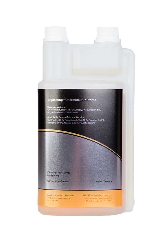 - Flüssiges Ergänzungsfuttermittel zur Unterstützung von Gelenken, Knorpeln und Sehnen
