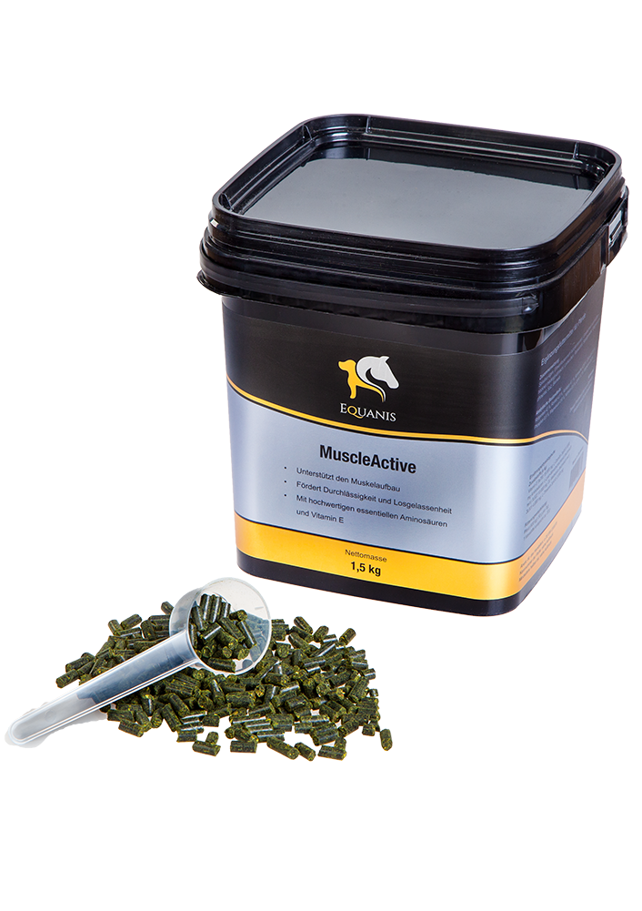 MuscleActive liefert hochwertige pflanzliche Aminosäuren, wertvolle Fettsäuren und natürliche Antioxidantien. So wird die Muskelregeneration gefördert, die Durchlässigkeit verbessert und das Pferd bleibt auch bei intensiver Belastung in Balance.