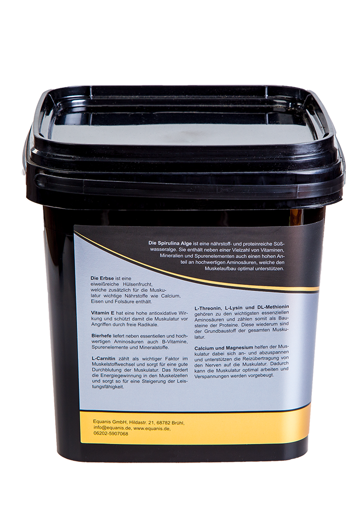 Equanis MuscleActive wurde entwickelt, um den Muskelaufbau, die Leistungsfähigkeit und Regeneration deines Pferdes gezielt zu unterstützen. Die hochwertige Zusammensetzung aus Spirulina-Alge, Erbse, Reiskeimöl, Bierhefe, Vitamin E, Calcium und Magnesium versorgt den Körper mit allen wichtigen Bausteinen für Energie und Zellschutz – ganz ohne Melasse, Getreide oder Zuckerzusätze.