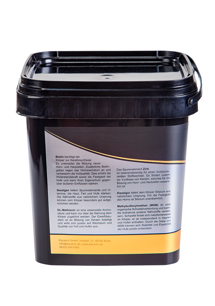 - Biotin: Unterstützt das Wachstum und die Qualität des Hufhorns