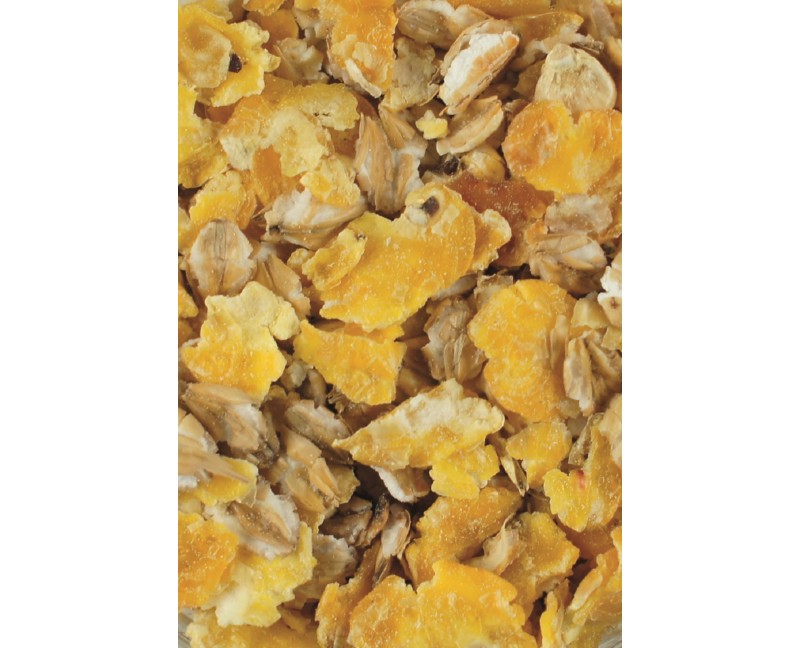 Maisflocken (hydrothermisch aufgeschlossen und gewalzt), Gerstenflocken (hydrothermisch aufgeschlossen und gewalzt), Rapsöl
