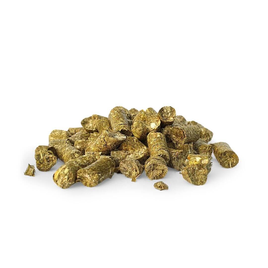 - 100 % ganze Maispflanze – gehäckselt, warmluftgetrocknet und pelletiert