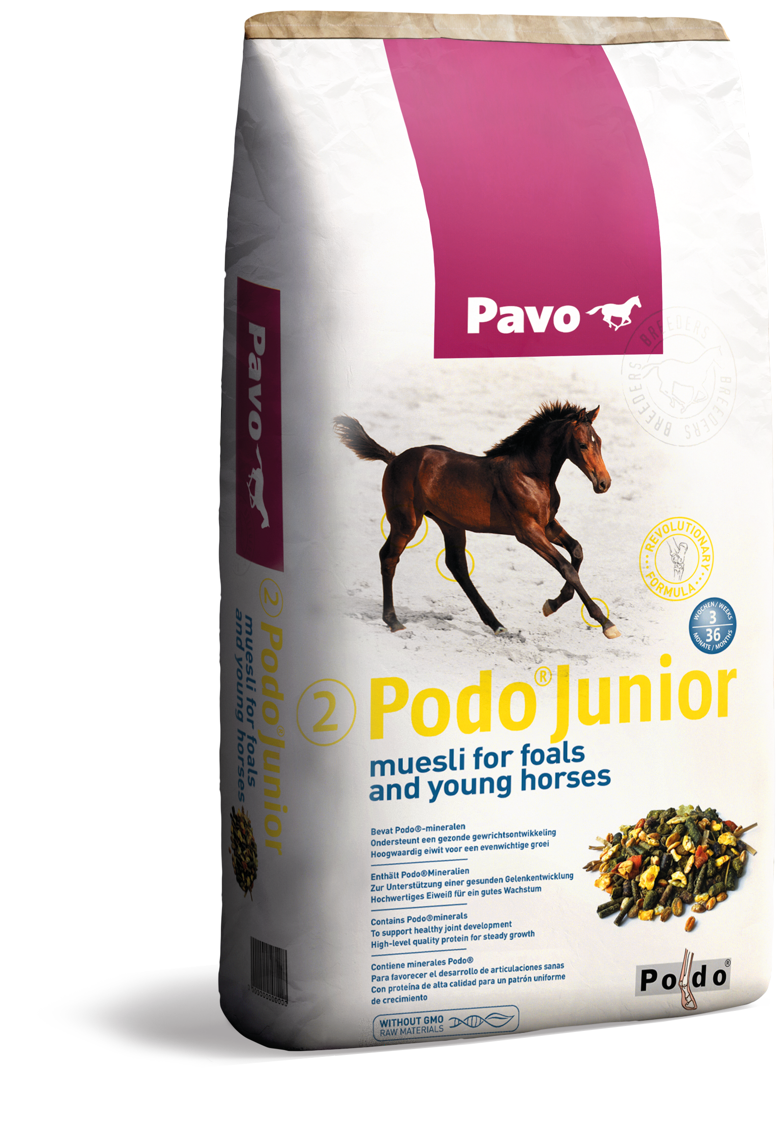 Pavo Podo® Junior ist ein hochwertiges Müsli zur Unterstützung eines gesunden und gleichmäßigen Wachstums von Fohlen und Jungpferden. Die ausgewogene Rezeptur liefert leicht verdauliche Energie sowie hochwertige Proteine und ist speziell auf die Bedürfnisse junger Pferde abgestimmt – von der 3. Lebenswoche bis zum Alter von etwa drei Jahren.